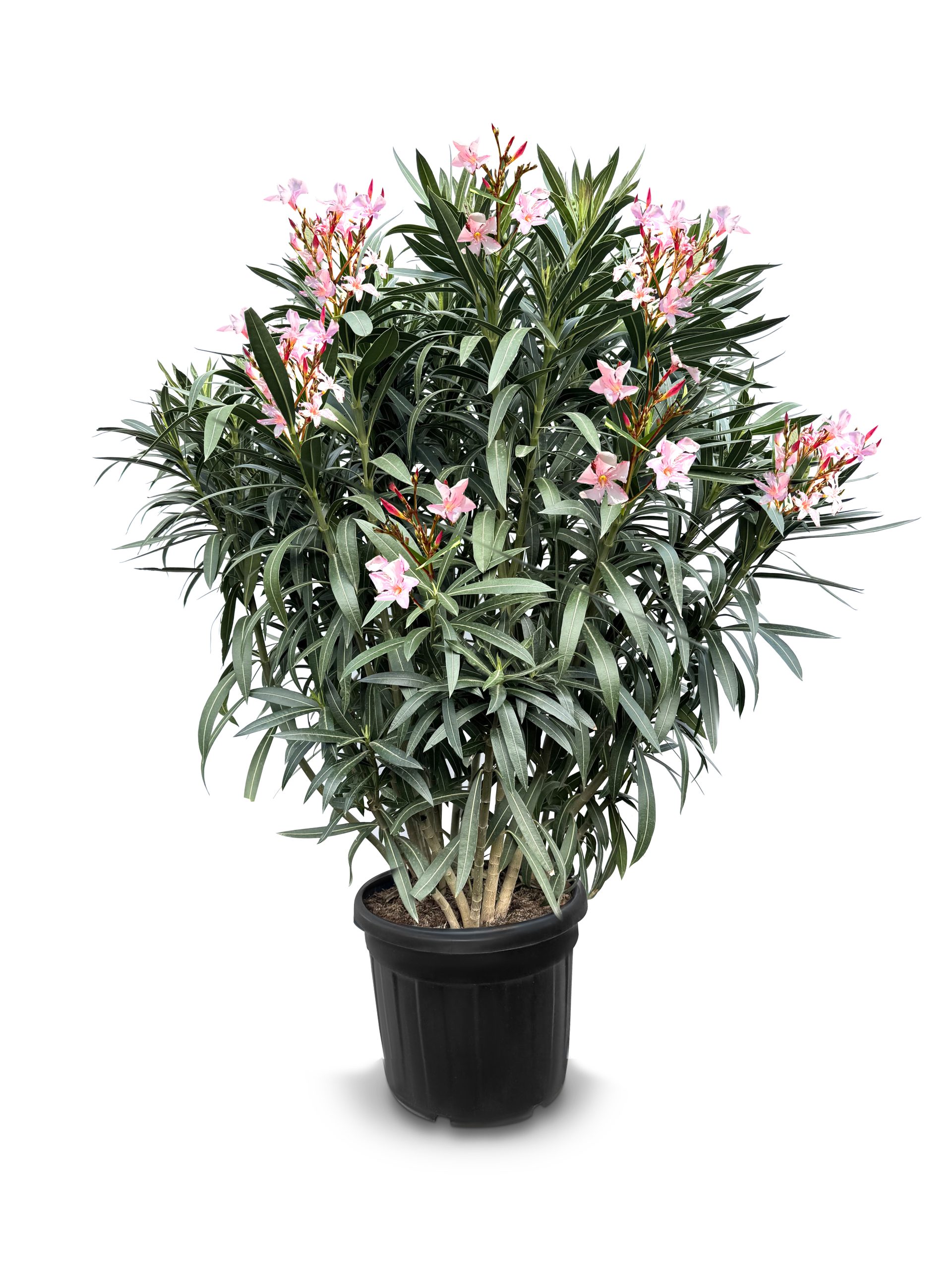 Cet Oléandre rose, également connu sous le nom de Nerium Oleander, a une hauteur totale d'environ 140-160 cm, pot inclus.