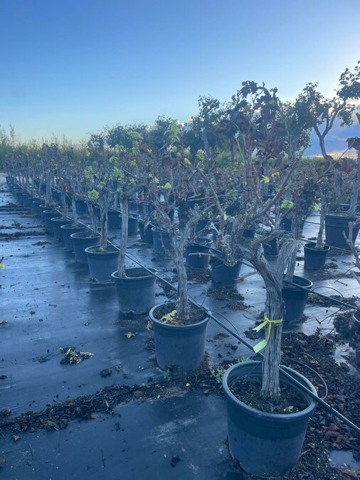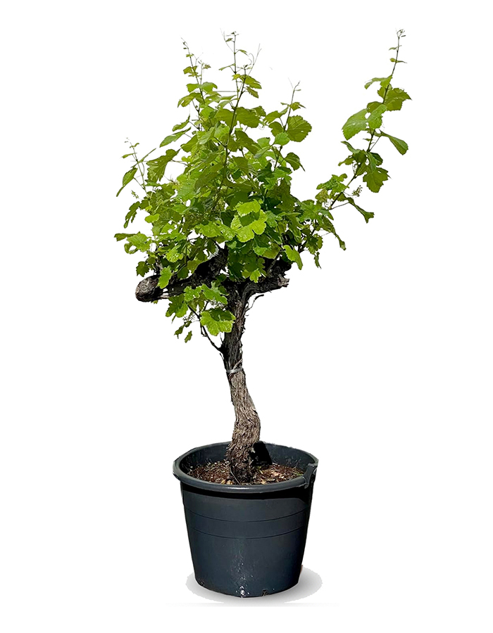 Cette vigne sur tige associe un tronc élégant et compact à une couronne luxuriante de feuilles vertes et de grappes savoureuses. Elle est parfaite comme plante solitaire décorative ou en combinaison avec d’autres plantes méditerranéennes.